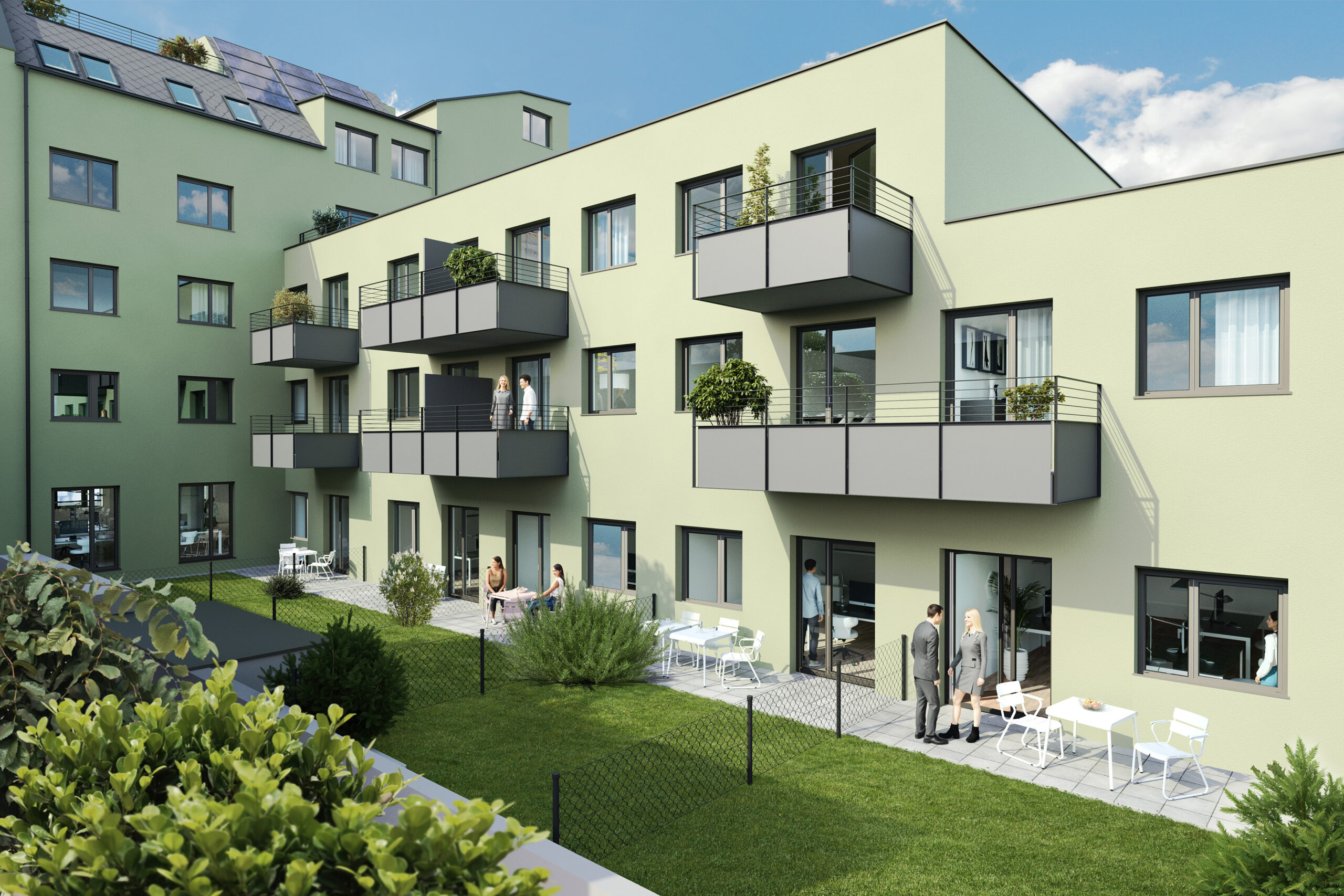 Im Hoftrakt werden möblierte Apartments errichtet, die nach Fertigstellung des Projekts für Wohnen auf Zeit vermietet werden.